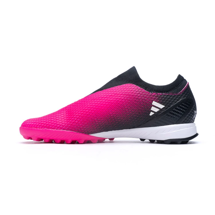 Zapatilla de fútbol adidas X Speedportal .3 Turf para adultos. Zapatillas de microfibra sintética sin cordones para utilizar en campos de moqueta, césped artificial, cemento o tierra. Zapatillas de gama baja en color Shock Pink-Zero Metallic-Black.