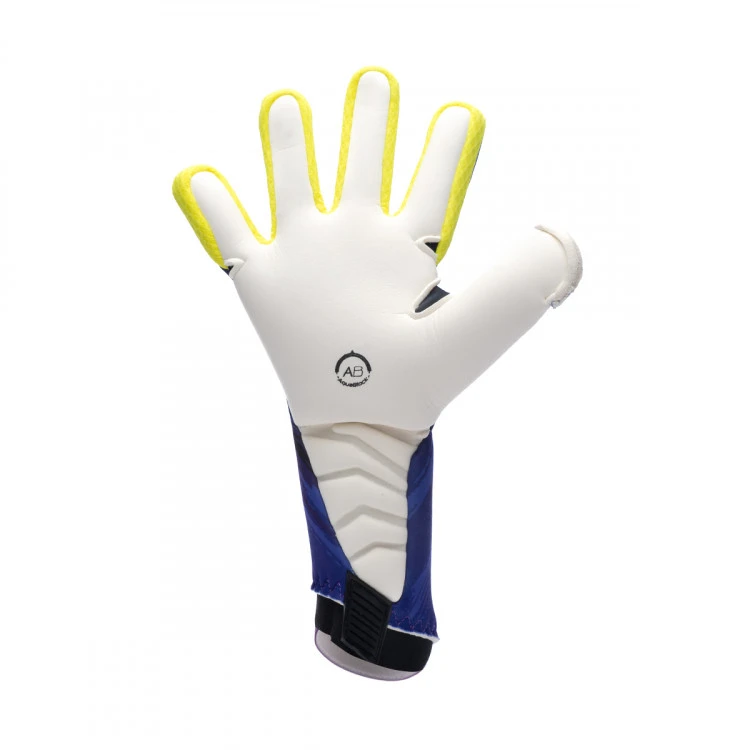 Látex español Aquablock de 3.5 mm + 3.5 mm de espuma, montado en corte negativo con doble envoltura en el pulgar y extensión hasta la muñeca.