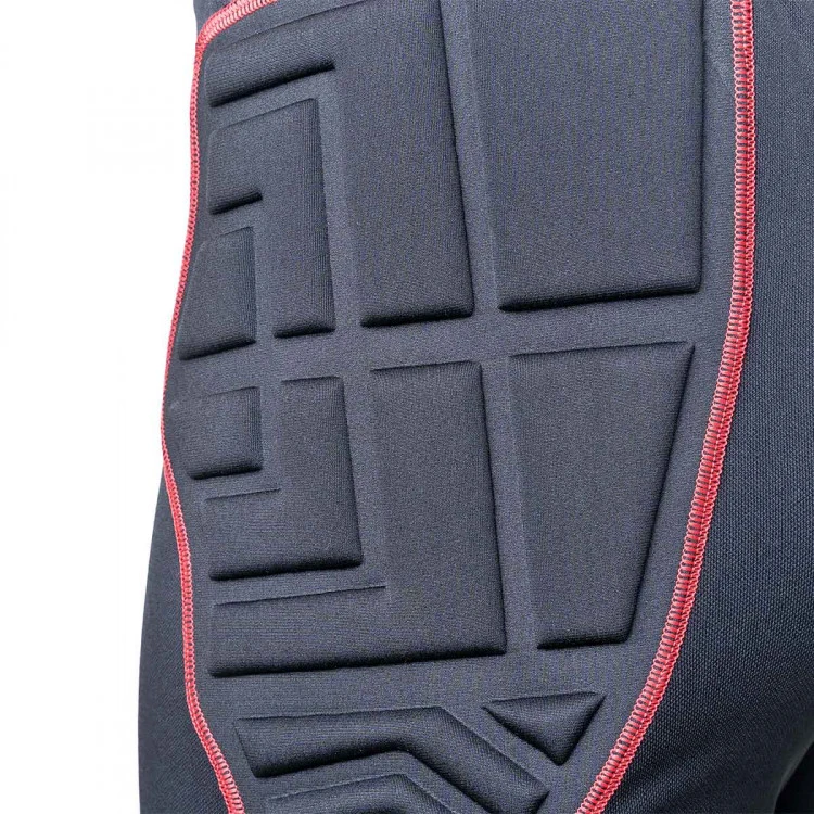 Pantalón 3/4 para portero de fútbol. Fabricado en tejido antiabrasivo para entrenamientos y partidos en superficies agresivas como el césped artificial y el turf. Protecciones con tecnología EVA PROTECTION en los principales puntos de impacto: caderas y rodillas. La goma EVA es uno de los materiales con mejor absorción de impacto del mercado. Mediante una técnica de termomoldeado las protecciones presentan multiples canales de flexión para adaptarse a la anatomía del futbolista.